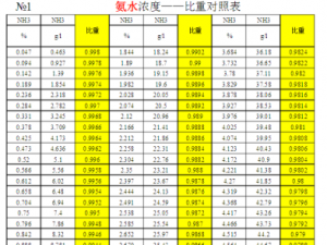 濃度可以根據密度推算出來 以上是密度和濃度對照表