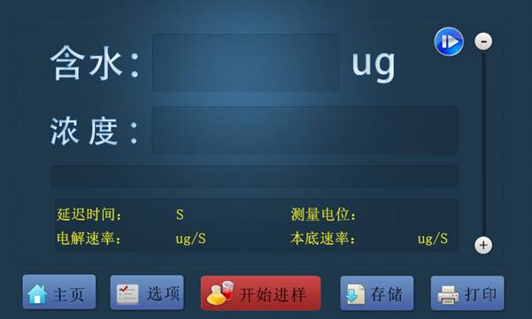 3.6、初次使用新鮮的庫侖電量法卡爾費休試劑含有過量的碘,顏色為深紅色,儀器中間提示過碘狀態,然后用微量注射器抽取20~50ul的純水從加樣口緩慢加入反應杯液面以下,直至反應杯內液體顏色變淡黃色,儀器左上方提示過水,含水量顯示值開始計數,停止加水,如果加入過多的水會導致電解平衡需要較長的時間。