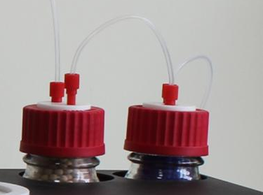4.5、氣口鏈接至儀器上方的兩個干燥瓶,并且將干燥瓶用管路相連接。