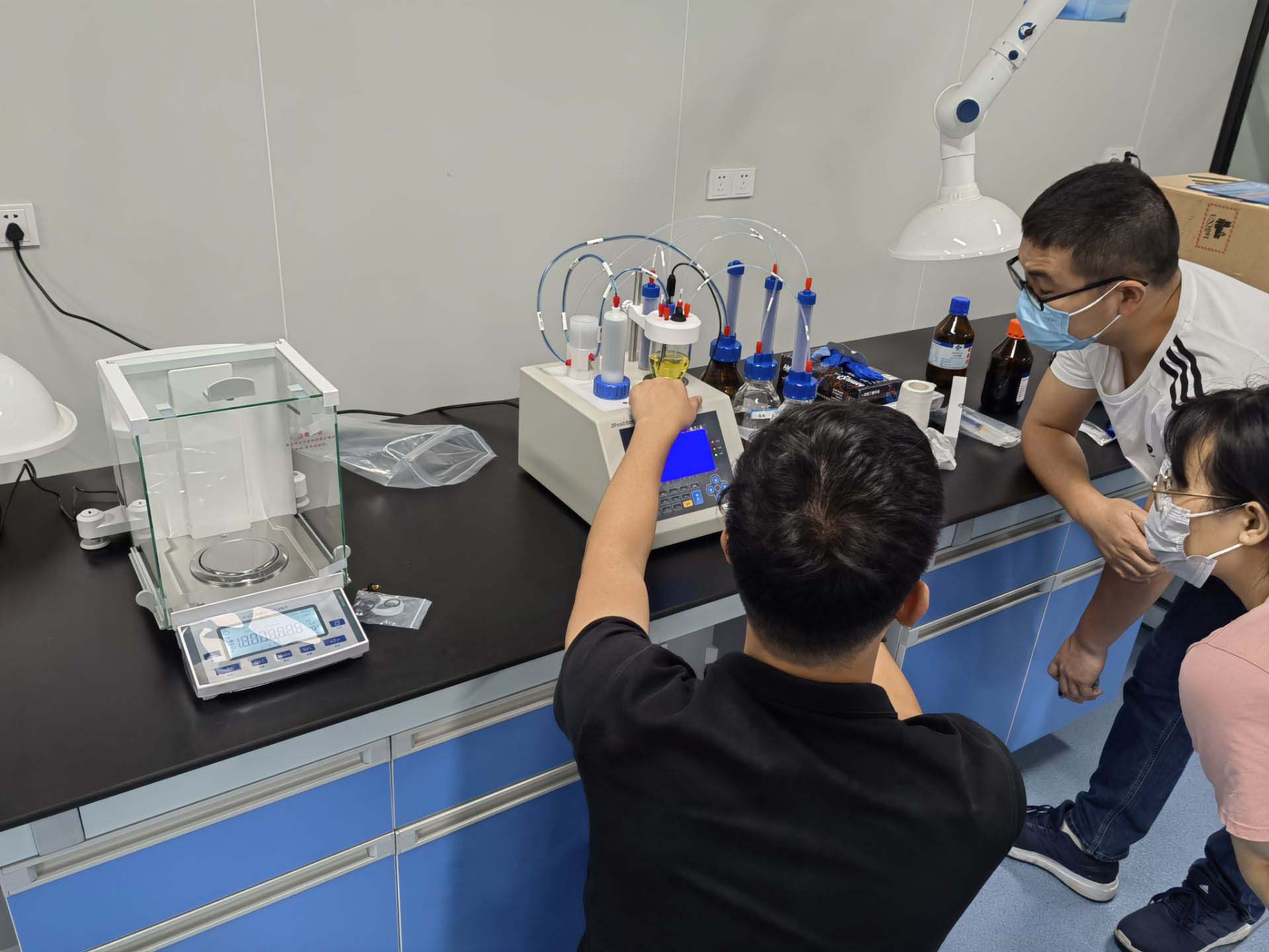 3.1、在使用前,把滴定池所有的玻璃口打開,滴定池、干燥管、密封塞可用水清洗。清洗后放在大約 80℃的烘箱內烘干,然后自然冷卻。特別注意陰極室、測量電極不能用水清洗,可用丙酮、甲醇等有機溶劑進行清洗,清洗后用吹風機吹干。