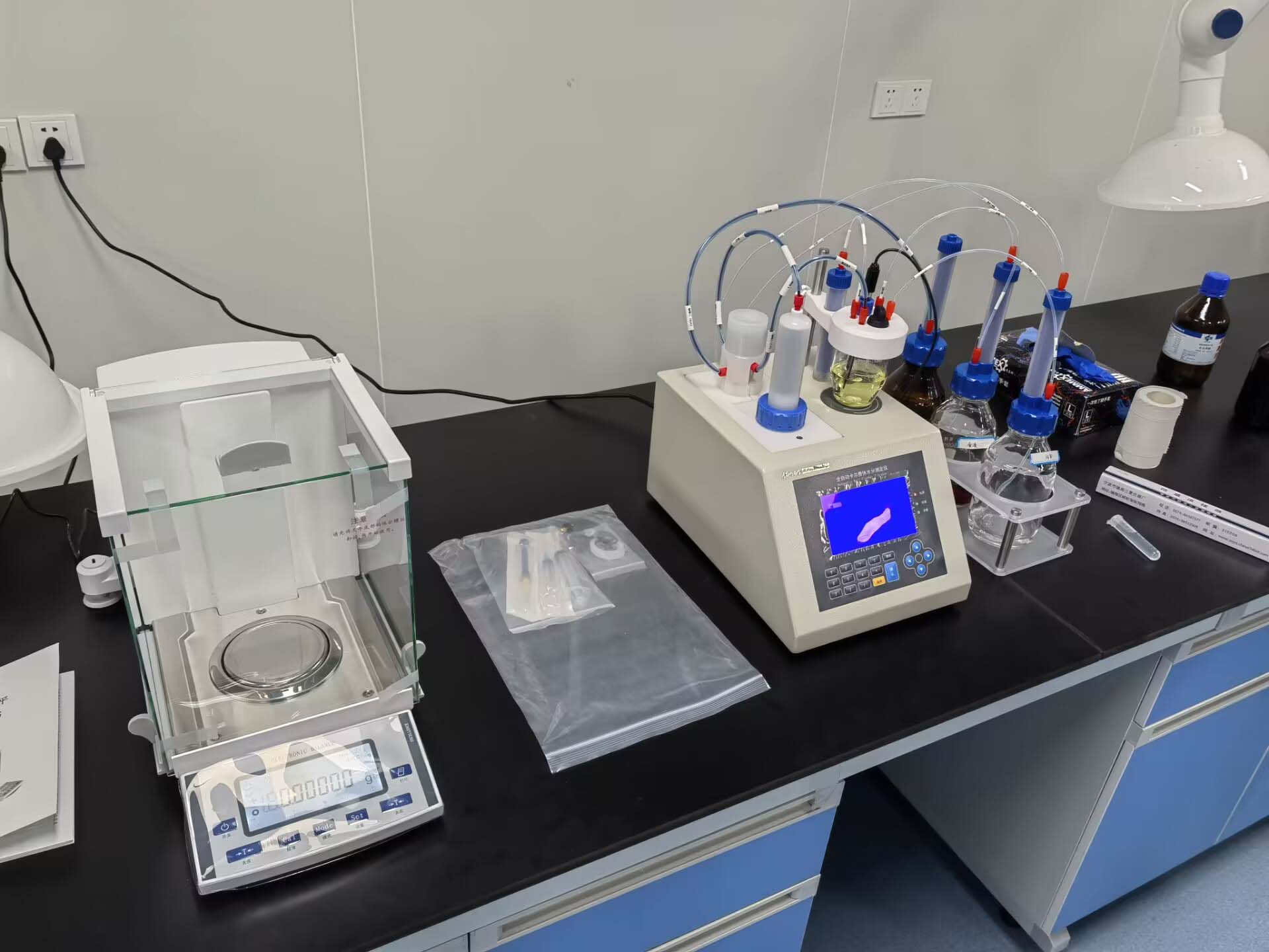 3.8、當儀器電解平衡后,界面的中間位置 會顯示“準備好滴定了,可以進樣測試了”,儀器則可正常使用。