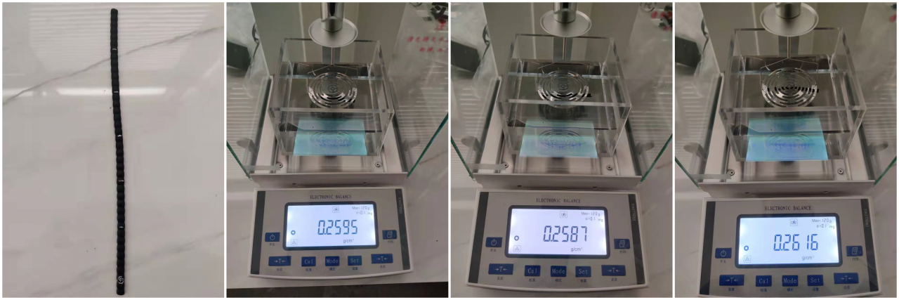 測試儀器:群隆LSD-100E 稱重精度:0.0001g 密度解析:0.0001g/cm?
