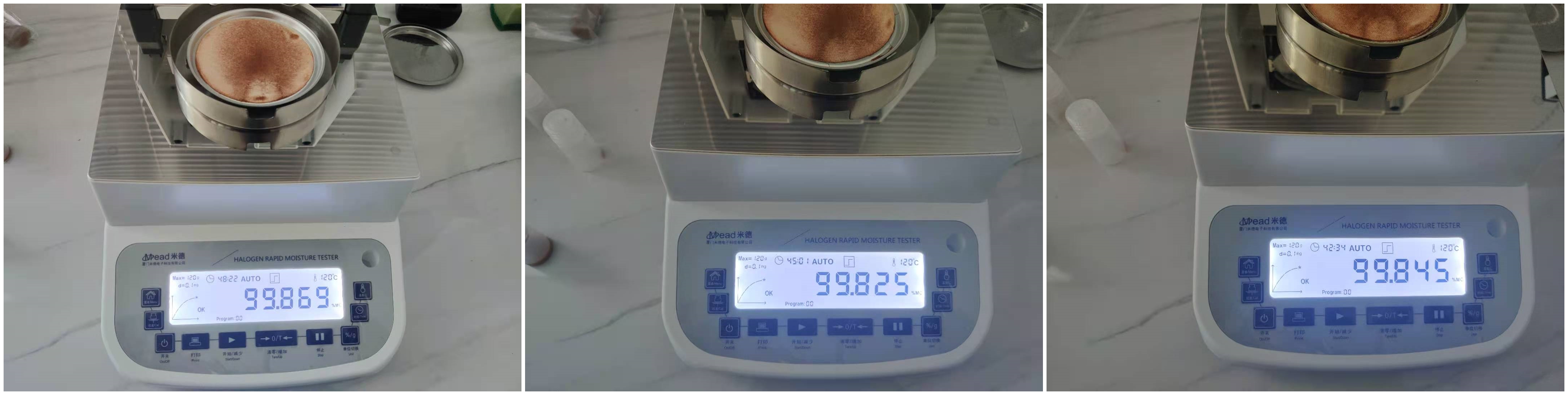 放同樣的重量,檢測水分值是否一致,如果一致說明就沒有問題。(在重量放合理的情況下)