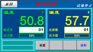 2.可顯示執(zhí)行程序號碼,段次,剩余時間及循環(huán)次數(shù), 運轉(zhuǎn)時間顯示 3.程序編輯以及圖形曲線顯示 4.具單獨程序編輯畫面,每頁可輸入4個段次溫濕度,時間 5.定點或程序動作狀態(tài)顯示 6.語言轉(zhuǎn)換可以切換中文/英文 7.7寸真彩顯示屏幕 |