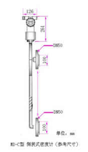 1: 直接式?在線液體密度計傳感器部分間距最少為200mm,直徑為50mm, 現場不能小于這些尺寸安裝,如選擇彎曲型密度計,請測量好可以伸進管內的法蘭和長度尺寸.